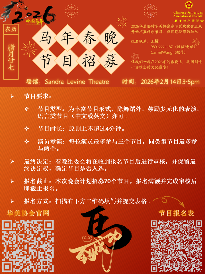 The 2026 Year of the Horse Spring Festival Gala is just around the corner, and we are enthusiastically seeking exciting performances! Whether you are a talented singer or dancer, a creative actor or magician, or a performer passionate about traditional culture, we look forward to having you join us!